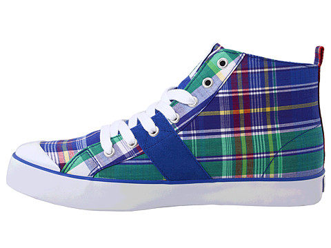 estilo High-top com uma lona xadrez camur?a e contrapondo tira no vamp.